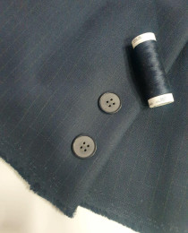 Абсолютно денимная, "фирменная" стилистика: глубокий синий цвет, матовый, в тончайшую серебристую полоску, которая в ближайшем приближении становится ещё и клеткой.