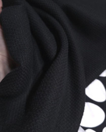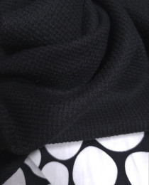Ткань очень стильная и классная! И чёрная. Плетение рогожки - выпуклые квадратики (как у черных сумок Шанель 2.55). Вещь будет дизайнерской и "вечной", сочетаемой со всем.