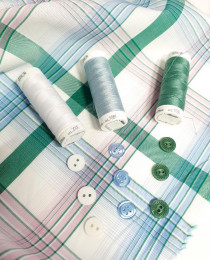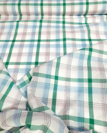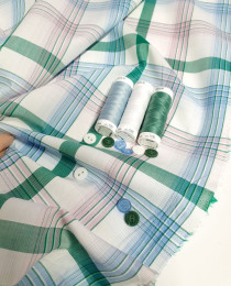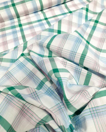 Сегодня хотим предложить вам достойнейший рубашечный хлопок в дизайнерской цветовой палитре: изумрудно-розово-голубая клетка/полоска.
