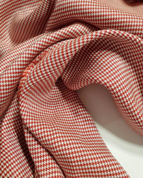 Чудесный мелкий houndstooth check ("клык гончей" или "гусиная лапка") – оригинальный шотландский узор шерстяных тканей. Позже, он перешёл в люксовую индустрию моды, и теперь костюм с узором houndstooth – это отсыл к британской элите, пош-манерам, элегантности, роскоши и буржуазности.