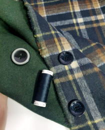 Эта шерсть, однотонную изумрудную сторону которой можно использовать на отвороты и лацканы, еще и классно "работает" в спортшиковых/денимных луках с остро-модными темно-синими джинсами из сырого денима (у нас, кстати, его большой выбор в магазине).