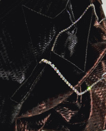 По выработке это парчовый твид - интересное вплетение сверкающих ленточек в общее полотно.
