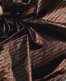 По выработке это парчовый твид - интересное вплетение сверкающих ленточек в общее полотно.