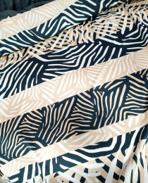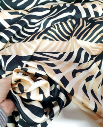 Чтобы образ был просто бомбическим невероятный кутюрный, и по-дизайнерски мега-эффектный, искусственный шёлковый креп из стока Макс Мара (производство - Италия). Оригинальная абстракция в принте, крупная и полосочковая, смягчается нейтральной цветовой гаммой. Ткань клёвая, но очень продуманная, без эффекта too much.