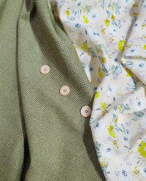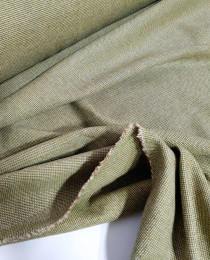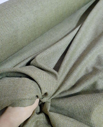 Микро-твидовое плетение, три нити: оливковая, шоколадная и сливочная. За счет этого, фактура ткани не гладкая, а зернистая (вафельная), дизайнерская, "с изюмом". Из таких шёрсток классно отшить богемный костюм или костюмные удлиненные шорты в стиле old Celine.