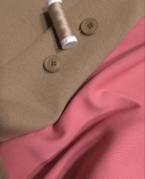 чтобы услить эффект "мимими", и придать образу девчачьего озорства и нежности, добавляем под пальто хлопково-шерстяной костюм цвета румян! Ткань натуральная, комфортная для всех, и плюс, матовая и не слишком "пафосная". Она органично вписывается в каждодневные образы, и более того, намконтрасте, будет клёво смотреться с кардиганным пальто-халатом из шерстяного трикотажа и уггами!