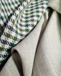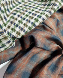 Шерсть+Хлопок = оливково-шоколадная клетка на нежном серо-сливочном фоне. Интеллигентная смесовочка на осеннее ПАЛЬТО либо на плотненький "уличный" блейзер. Ткань благородная, в истинно "английском" стиле, и в качественной итальянской выработке. Твидовое плетение.