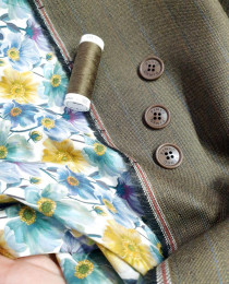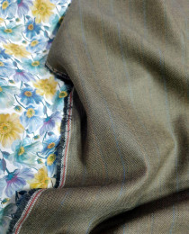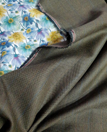• стильный оттенок оливкового хаки, который сочетается как с ягодно-лепестковыми оттенками, так и со стандартными офисными тонами: синим, серым, бежевым. Костюм из этой ткани можно разделять и миксовать с верхом/низом от других костюмов, обогащая вариативность гардероба.