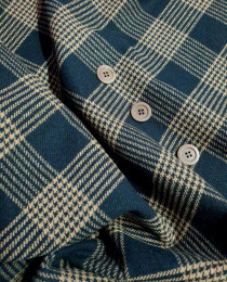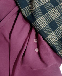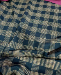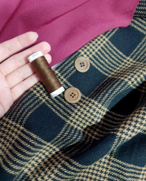Классическая черно-шоколадная клетка, и даже вариант "гленчека – принца Уэльского", превосходная пальтовая шерсть из стока HUGO BOSS. Это шерсть на осеннее пальто, в духе рафинированных и буржуазных коллекций Майкла Корса и Ральфа Лорена. А ещё, конечно, есть генетика Бёрберри, благодаря классическому английскому твидовому узору.