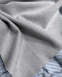 Он "пухлый", состоящий из двух слоёв: лицевого серебряного пике и изнаночного, кулирного, дублирования. Выработка очень аккуратная, подклад можно не делать.