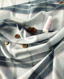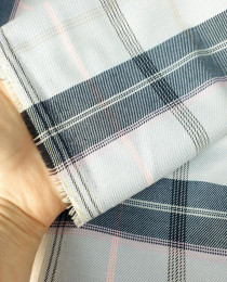 В последней поставке из Италии пришла вот эта классная смесовочка: хлопок, ШЕРСТЬ, пэ. Мягкая, лёгкая, слабо-мнущаяся, и в очень трендовой гамме: голубая клетка с розовой ниточкой!