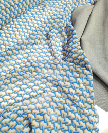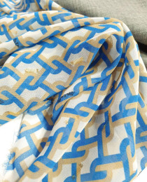 блузочно-плательный, ПОДПИСНОЙ, шифон бренда Marella ("дочка" концерна Max Mara), с люрексовыми вставками-квадратиками. Красивый дизайн в виде двойных цепей и тонкое мерцание золота по полотну – и оригинально, и чувственно, и современно, и 100% трендово!