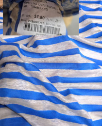 Отличный мерсеризованный трикотаж на "сочные тельняшки" из нашей новой поставки. ЯРКО-ГОЛУБАЯ полоска + цвет небелёного льна.